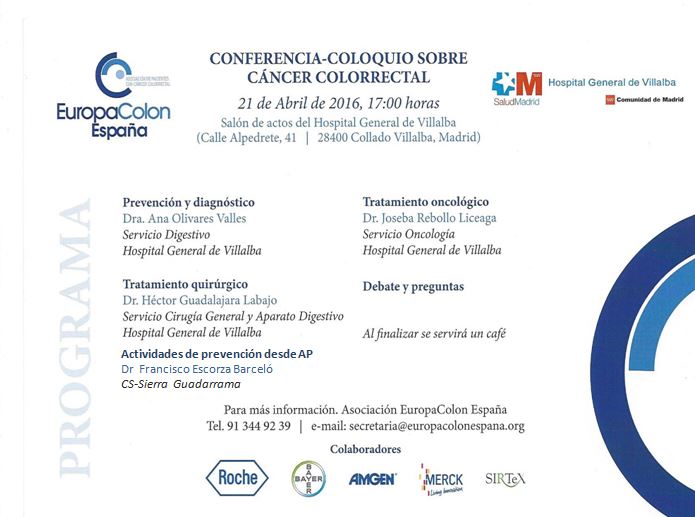 - Conferencia: Sobre el Cáncer Colorrectal, en colaboración con la asociación EuropaColon España